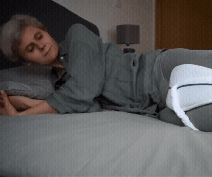 Placez simplement le coussin entre vos cuisses ou genoux avant de vous allonger sur le côté. Sa sangle ajustable permet de le maintenir en place toute la nuit, même si vous bougez.