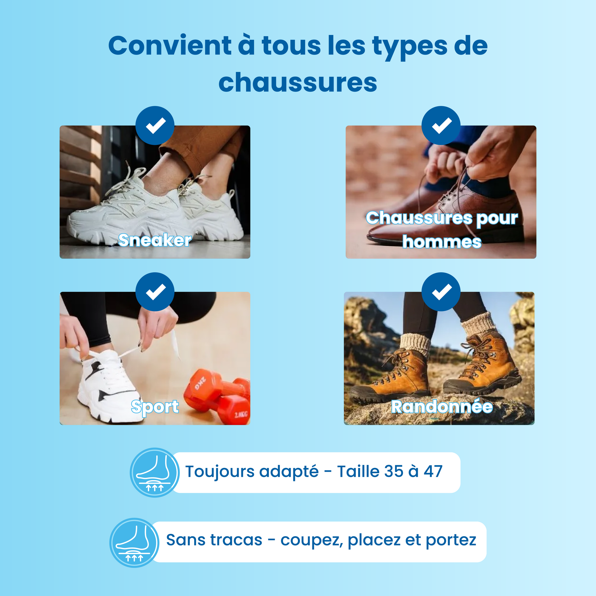 Les semelles magnétiques Magnétiva conviennent-elles à toutes les tailles de chaussures ?